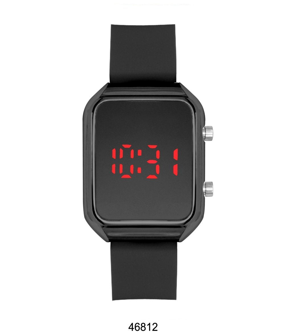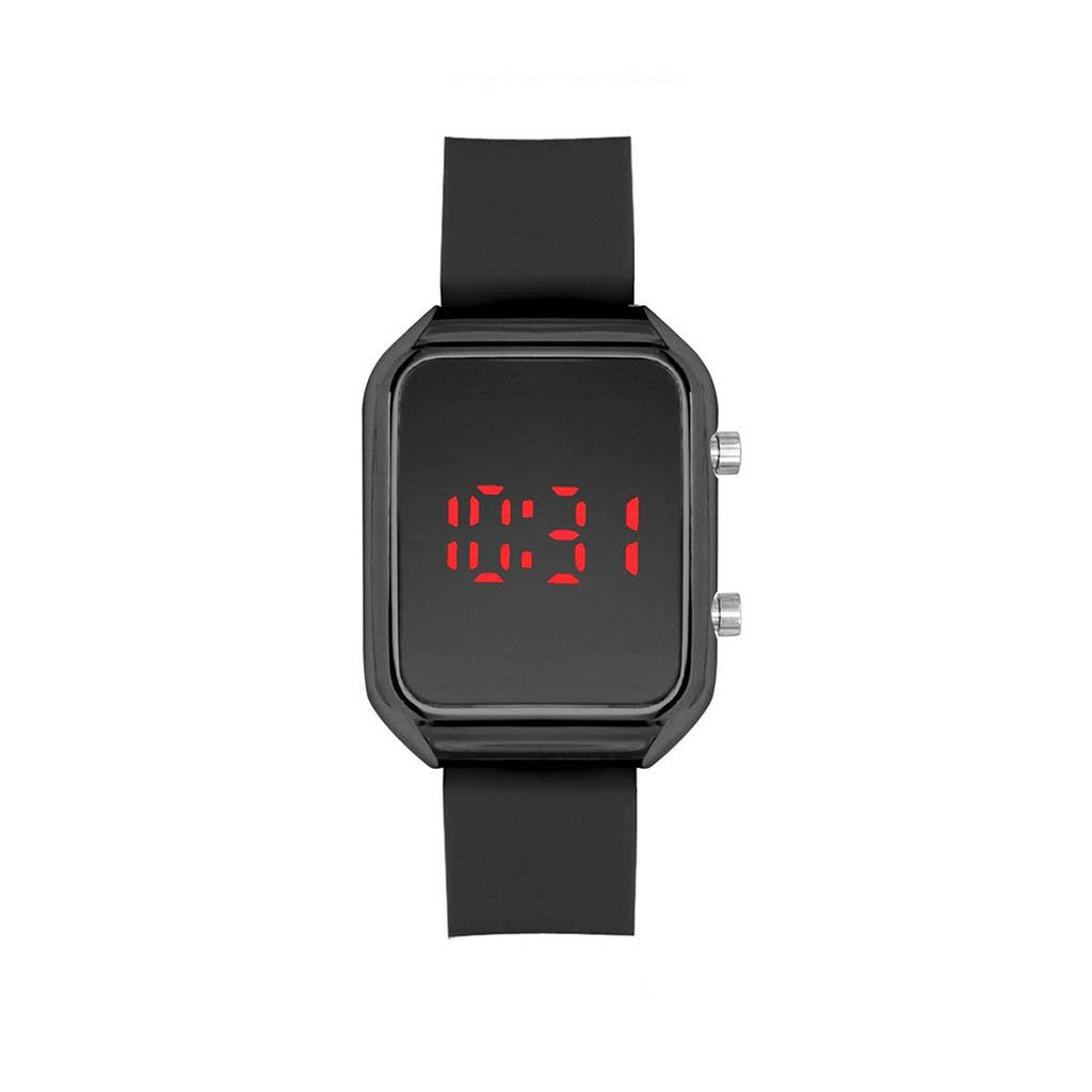 LED Watch with Black Rubber Band and Black Case